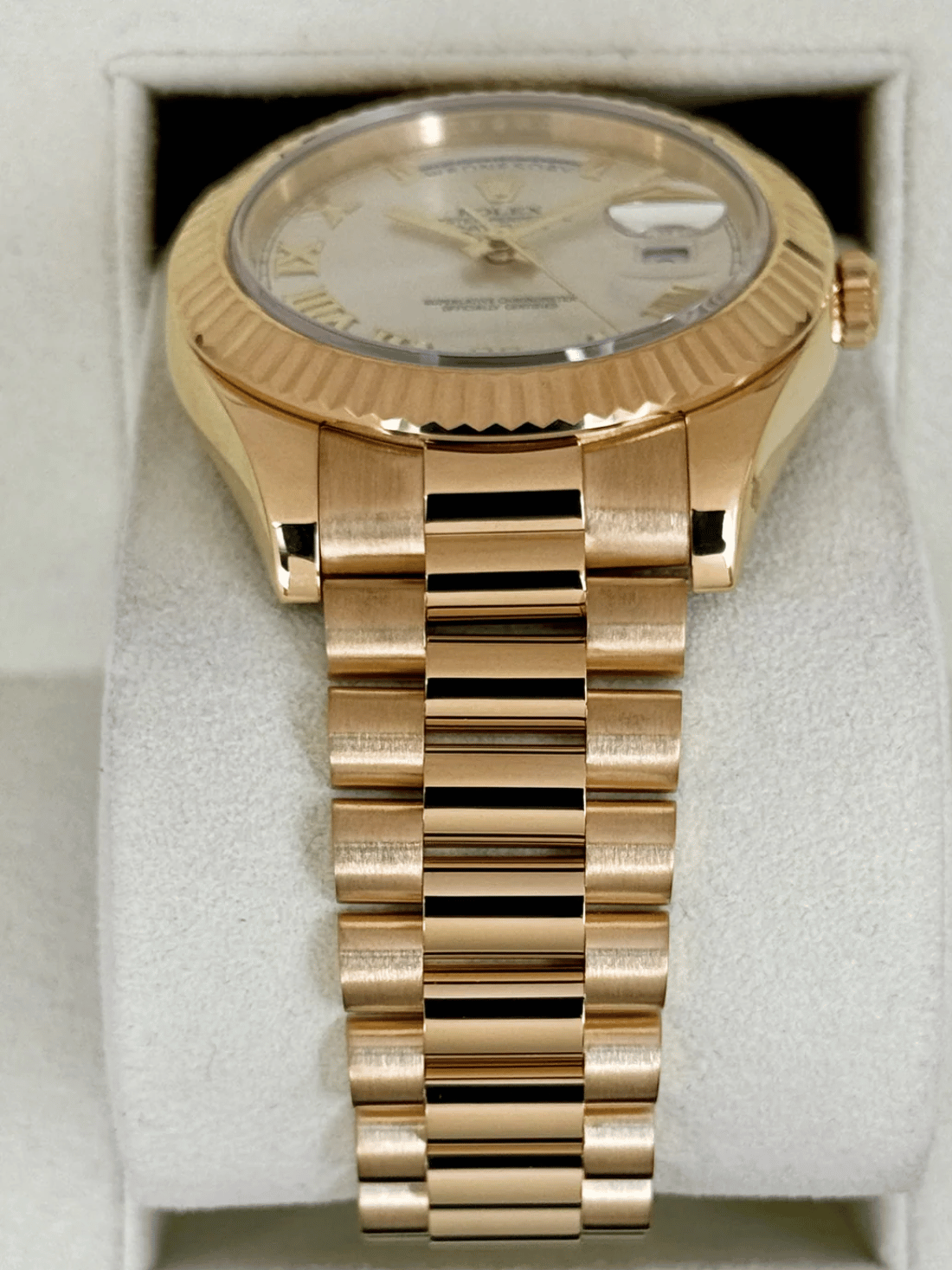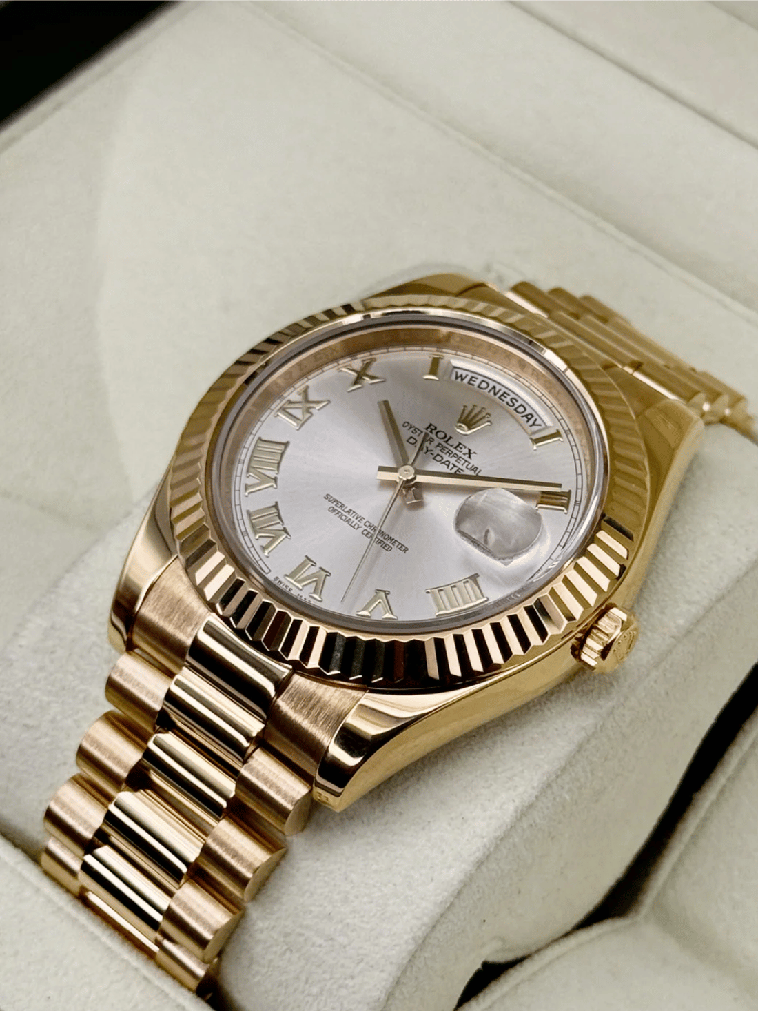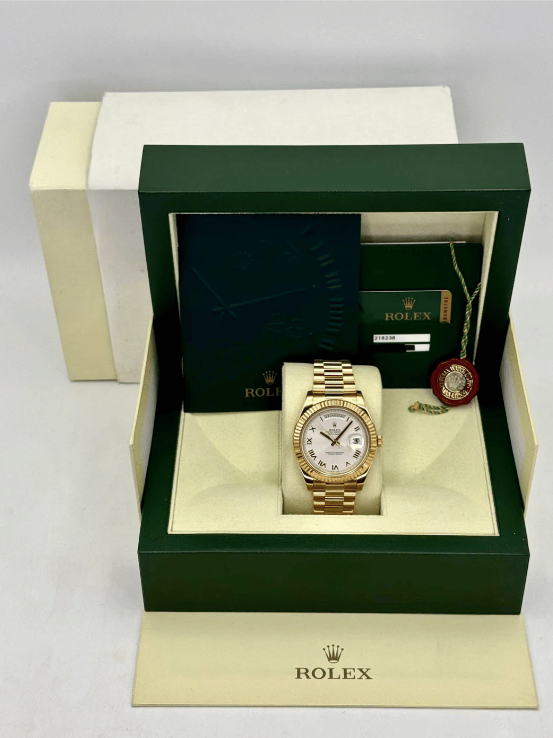2012 Rolex Day-Date II 41mm 218238 18K Yellow Gold Presidential Bracelet Silver Roman Numeral Dial Fluted Bezel