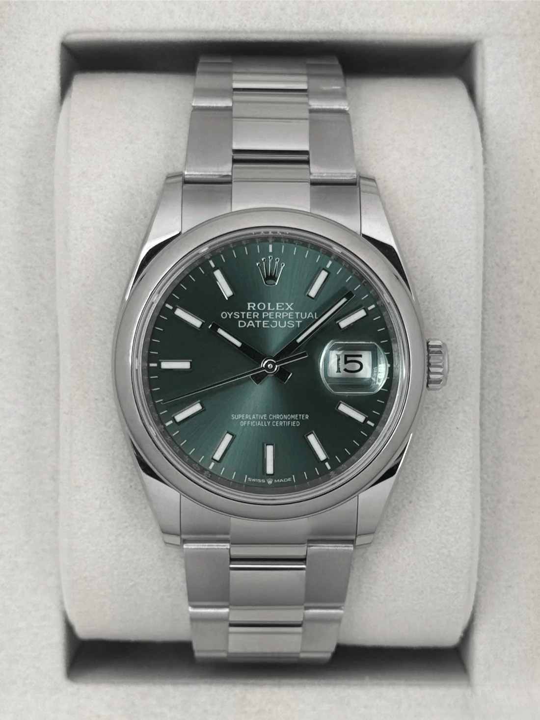NEW 2025 Rolex Datejust 36mm 126200 Stainless Steel Oyster Bracelet Mint Green Dial and Smooth Domed Bezel