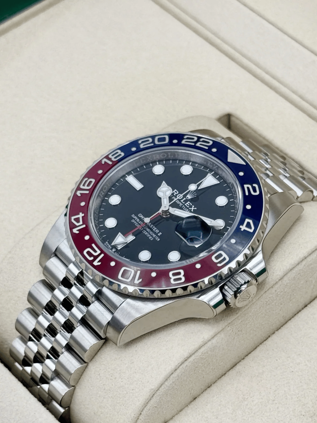 - Bezel: Blue and Red Ceramic “Pepsi”